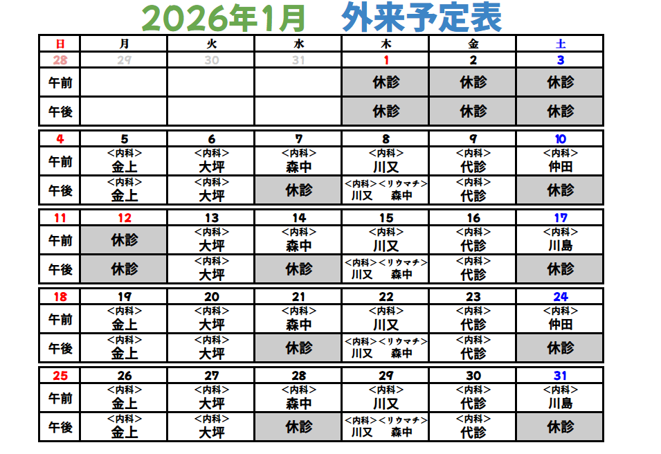 ※担当医師は都合により変更になる場合があります。ご了承ください。