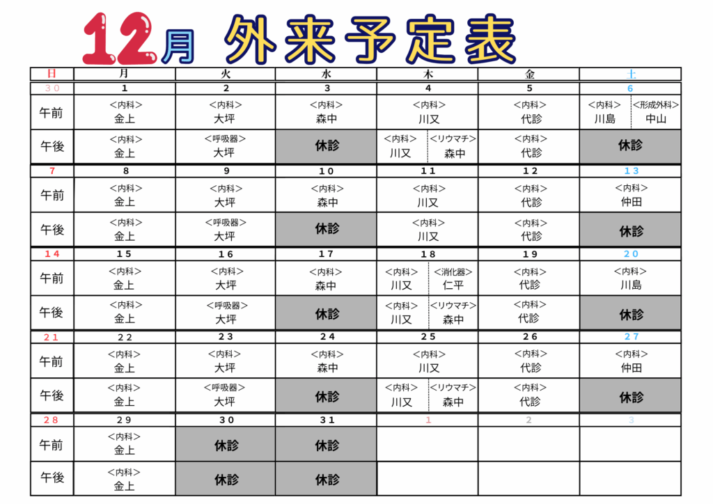 ※担当医師は都合により変更になる場合があります。ご了承ください。
