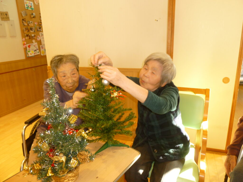 今年も、大きいツリーに小さいツリー、利用者様に飾り付けしていただきました。